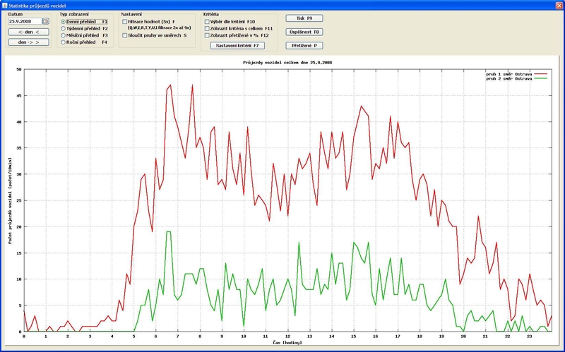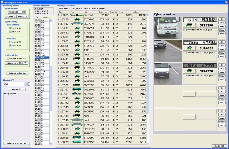 Obslužný program neslouží jen pro online přehled vozidel, ale umožňuje také získaná data přehledně zobrazit a pracovat s nimi. Uživatel má tak například možnost zobrazit si statistiku průjezdů vozidel pro dané období a to jak graficky, tak i číselně včetně úspěšnosti vyhodnocení systému. Samozřejmostí je i nadefinování vlastních kritérií pro detekci vozidel.