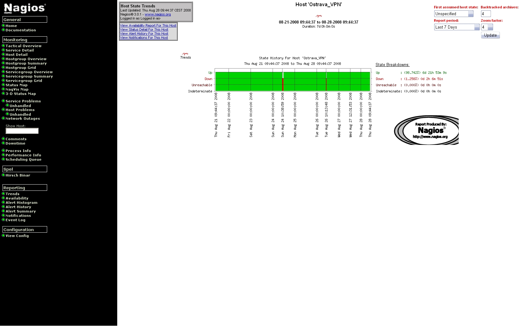 - prohlížení reportů o historii stavu monitorovaných systémů a jejich grafické zobrazení
