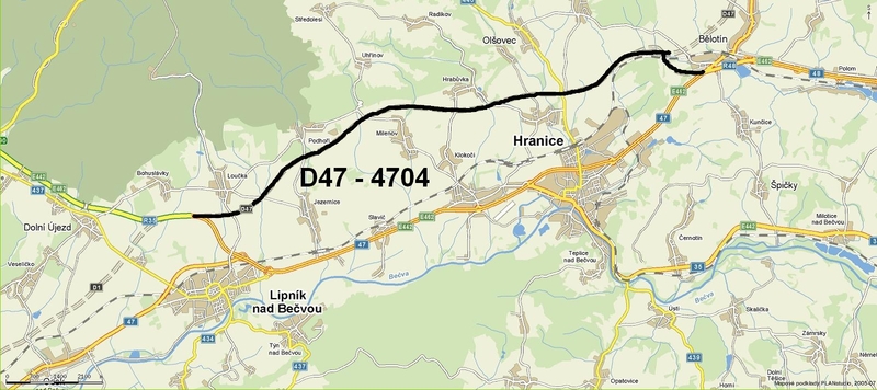 Výstavba nových úseků dálnice D47 (D1) na Moravě je v plném proudu. Jedním z nejvýznamnějších letos dokončených úseků je cca 16km úsek navazující na rychlostní silnici R35. Nový úsek dálnice začíná u sjezdu z R35 na Lipník nad Bečvou a končí až přivaděčem od Bělotína. V celém úseku 4704 nalezneme spoustu zajímavých stavebních objektů.